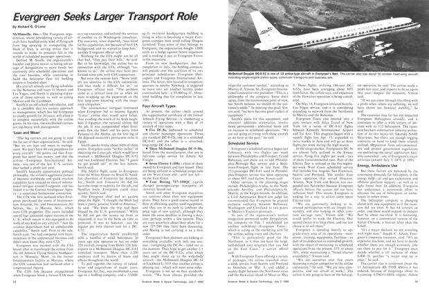 McMinnville, Ore.—The Evergreen organization, whose bewildering variety of aircraft have handled every kind of flying job from bug spraying to transporting the Shah of Iran, is serving notice that it intends to make its presence felt in the world of scheduled passenger operations.