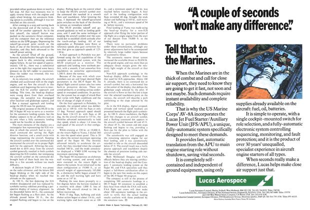 Yuma, Ariz. —McDonnell Douglas Corp.’s Douglas Aircraft Co. subsidiary is nearing the design freeze point on the Category 3 automatic landing system and head-up display for its DC-9 Super 80 transport, which entered service last September (AW&ST Sept. 22, 1980, p. 30) certificated for Category 2 manual approaches and landings.