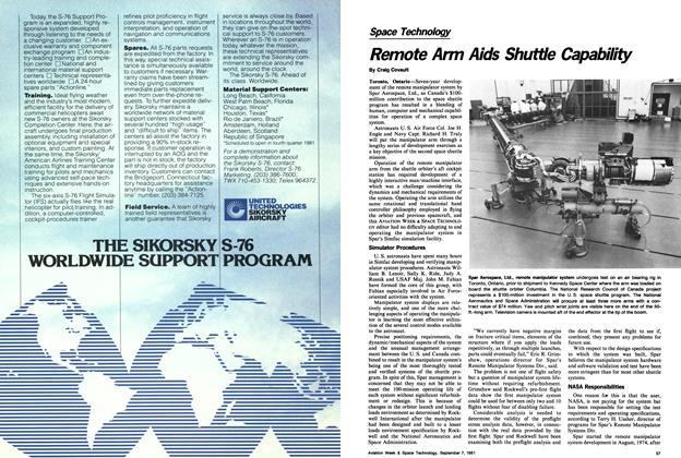 Toronto, Ontario—Seven-year development of the remote manipulator system by Spar Aerospace, Ltd., as Canada’s $ 100-million contribution to the space shuttle program has resulted in a blending of human, computer and mechanical capabilities for operation of a complex space system.