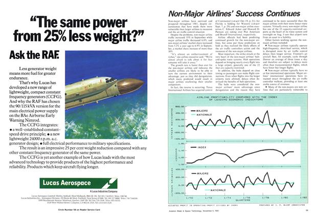 Non-major airlines have survived and prospered throughout 1981, despite circumstances that have made them more vulnerable than larger airlines to recession and the air traffic control situation. Despite the problems, non-major airline traffic increased 35% in September while major airline traffic decreased 6.8%, and non-major airlines’ market share increased from 5.2% a year ago to 6.9% in September, a market share increase of more than 30%.
