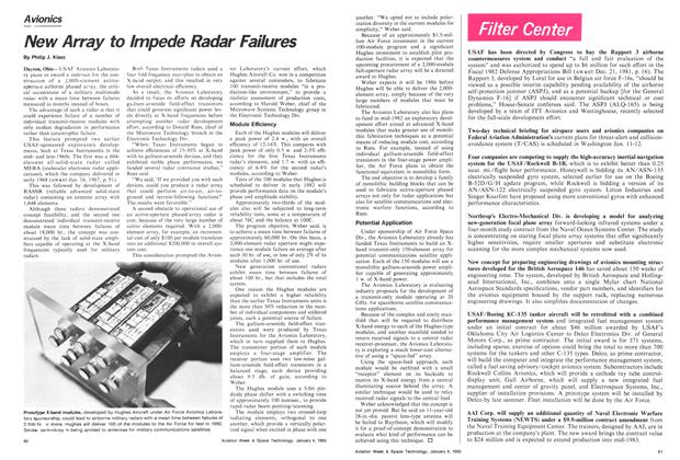 Dayton, Ohio — USAF Avionics Laboratory plans to award a contract for the construction of a 2,000-eiement activeaperture airborne phased array, the critical cornerstone of a military multimode radar with a mean time between failures measured in months instead of hours.