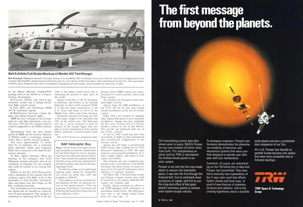 Paris—Continuing doldrums in civil helicopter markets and emerging military requirements for armed assault helicopters were evident in the displays of U.S. and European helicopter manufacturers at this year's Paris air show. Although there were new versions of civil helicopters, including a full-scale mockup of the Bell Helicopter Textron Model 400 TwinRanger and a production version of the Hughes 500E, helicopter industry participation here was dominated by olive-colored equipment that included the U.S. Army/Hughes Helicopters AH64 Apache advanced attack helicopter, armed versions of the Sikorsky Black Hawk and AUH-76, a full-scale mockup of the Westland Lynx 3 antitank helicopter, a scale model of Messerschmitt-Boelkow-Blohm's latest refinement of the PAH-2 assault helicopter for the West German Army, and armed versions of several Agusta helicopters.