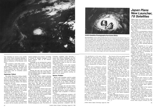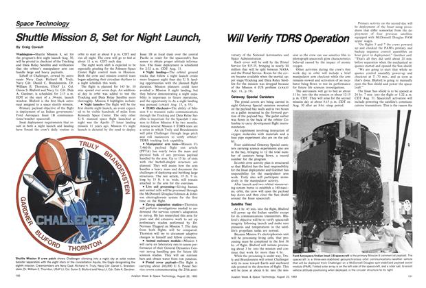 Washington—Shuttle Mission 8, set for the program’s first night launch Aug. 30, will be pivotal in checkout of the Tracking and Data Relay Satellite and verification that the orbiter’s manipulator arm can handle large and heavy payloads.
