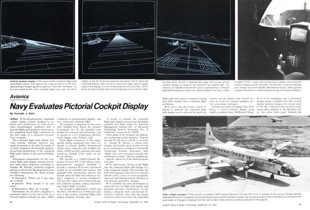 Buffalo, N. Y.—Experimental integrated cockpit display concept, designed to enhance pilot performance in solid instrument meteorological conditions with a pictorial flight path guidance presentation, has completed initial flight evaluations in the first stage of a projected five-year Navy program.