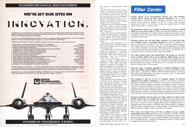 Baltimore—The Westinghouse AN/APQ-164 multifunction radar for the USAF/ Rockwell B-1B, pioneering the use of a phased-array antenna for airborne applications, is scheduled to start flight tests this summer on a B-1 A. Phased-array technology enables a single antenna to provide a very high resolution ground-mapping beam for weapons delivery and navigation, which is time-interleaved with a different, optimally shaped beam for terrain following and avoidance, eliminating the need for multiple antennas.
