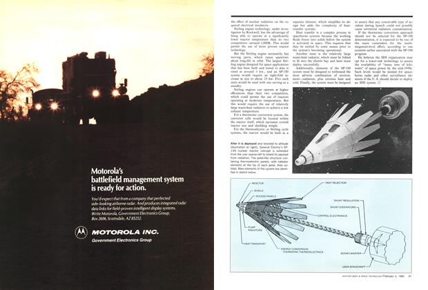 Washington—A new program to develop space power systems capable of supplying 5-10 megawatts, or as much as 100 megawatts in brief bursts, for directed and kinetic energy weapons, will be launched this summer to complement the SP-100 program to develop nuclear space power systems capable of generating 100 kw. or more (AW&ST Jan. 28, p. 78).