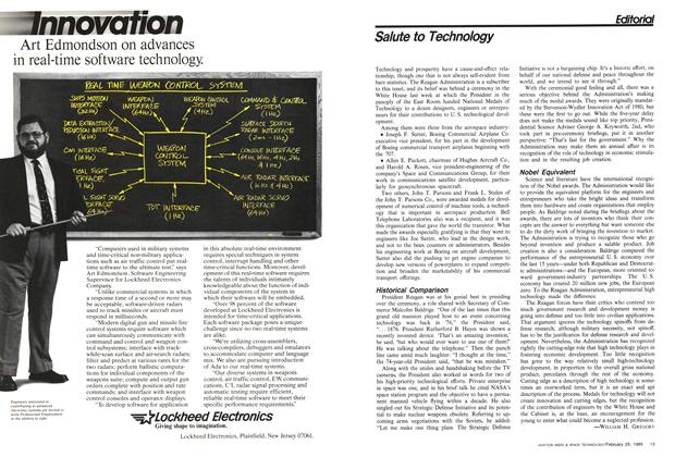 Technology and prosperity have a cause-and-effect relationship, though one that is not always self-evident from bare statistics. The Reagan Administration is a subscriber to this tenet, and its belief was behind a ceremony in the White House last week at which the President in the panoply of the East Room handed National Medals of Technology to a dozen designers, engineers or entrepreneurs for their contributions to U. S. technological development.