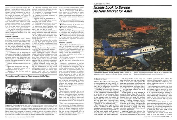 Tel Aviv—Israel Aircraft Industries plans to focus on Europe as a new market for its Astra business jet—one that could provide it with an alternative to its traditional marketing base in North America. “Europeans are going into intercontinental-range business, and they are going to need a long-range, high-speed aircraft to use in this new environment,” Jacob Shani, director of civil aircraft marketing for the company, said.