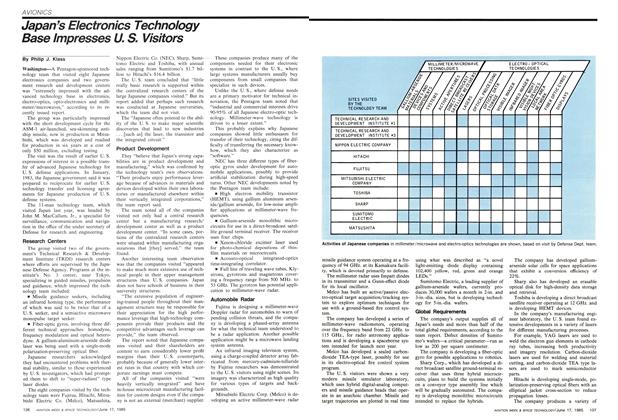 Washington—A Pentagon-sponsored technology team that visited eight Japanese electronics companies and two government research and development centers was “extremely impressed with the advanced technology base in electronics, electro-optics, opto-electronics and millimeter/microwaves,” according to its recently issued report.