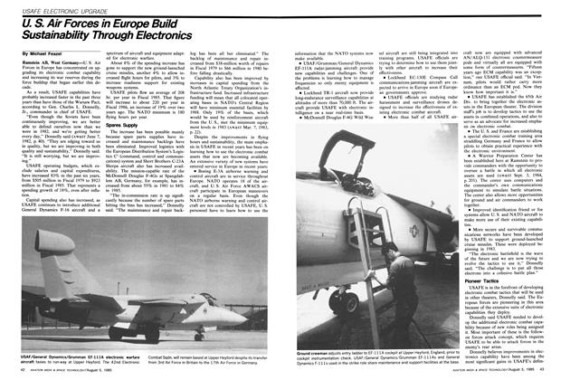 Ramstein AB, West Germany—U. S. Air Forces in Europe has concentrated on upgrading its electronic combat capability and increasing its war reserves during the force buildup that began earlier this decade. As a result, USAFE capabilities have probably increased faster in the past three years than have those of the Warsaw Pact, according to Gen. Charles L. Donnelly, Jr., commander in chief of USAFE.