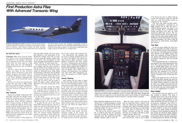 Wilmington, Del.—Israel Aircraft Industries' Astra is a new aircraft bearing little resemblance to the company's Westwind line of corporate aircraft. The Astra offers ample cabin size, long range at a high cruise speed, and lowand high-speed handling characteristics that are difficult to match.