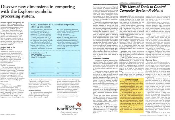 San Francisco—Boeing Co. is accelerating its research and development in artificial intelligence, and has implemented a program for rapid expansion of the technology throughout its operating companies. To speed the process of diffusing the new technology throughout the company's research and product divisions, Boeing is providing university-level artificial intelligence training to employees through an in-house education program.