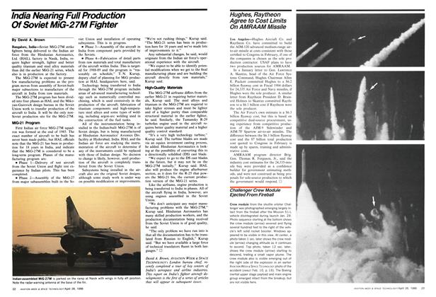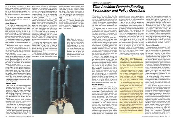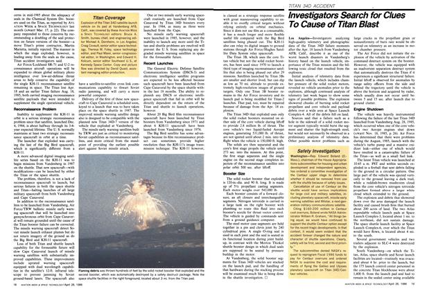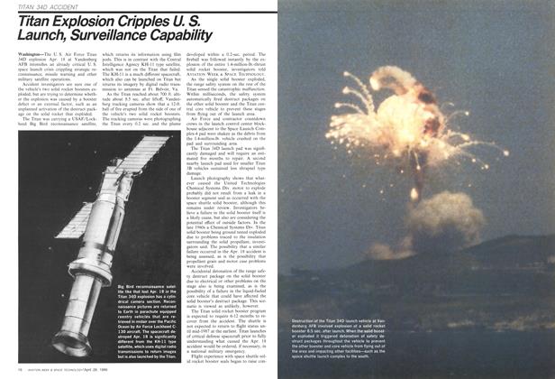 Explosion of the Titan 34D satellite launch vehicle on its pad at Vandenberg AFB, Calif., was covered by these AVIATION WEEK & SPACE TECHNOLOGY editors: Bruce A. Smith, bureau chief, and engineering editor Michael A. Dornheim, in Los Angeles; Craig Covault, senior editor space technology, Theresa M. Foley, space technology editor, and Paul Mann, senior congressional editor, in Washington, and Edward H. Kolcum, senior editor Southeast U. S., at Kennedy Space Center.