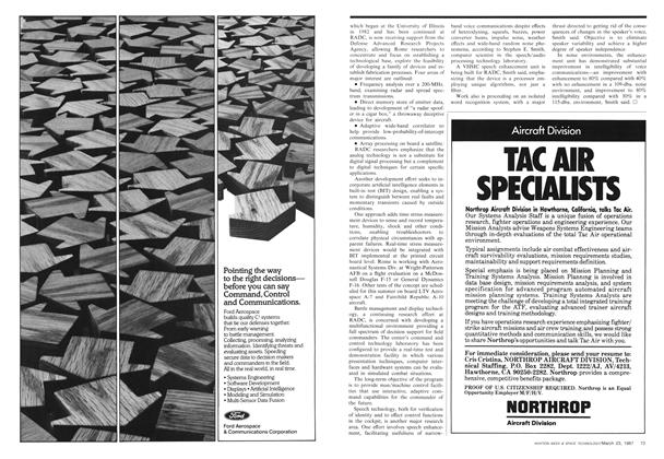 Griffiss AFB, N. Y.—Emerging command/control, sensor and processing technologies identified by USAF’s second Project Forecast team as initiatives it believes will “revolutionize the way the Air Force carries out its mission in the 21st century” are moving into advanced development laboratories at Rome Air Development Center here.