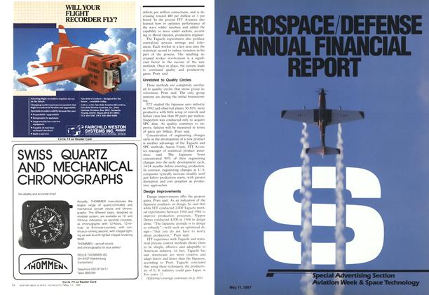Nutley, N. J.—ITT has doubled its production output, reduced defects by more than 50% and saved $60 million in the past 18 months using techniques that potentially can benefit the entire aerospace industry. ITT Avionics Div., a leading producer of active electronic warfare systems, applied statistical process control and Taguchi methods to the Pave Mint electronic countermeasures system for the USAF /Boeing B-52G/H as the company transitioned into production, and cut failure rates in half, according to D. Travis Engen, president and general manager of ITT Avionics (AW&ST Feb. 16, p. 98).