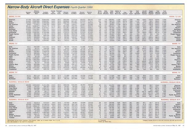 Narrow-body Aircraft Direct Expenses Fourth Quarter 1986