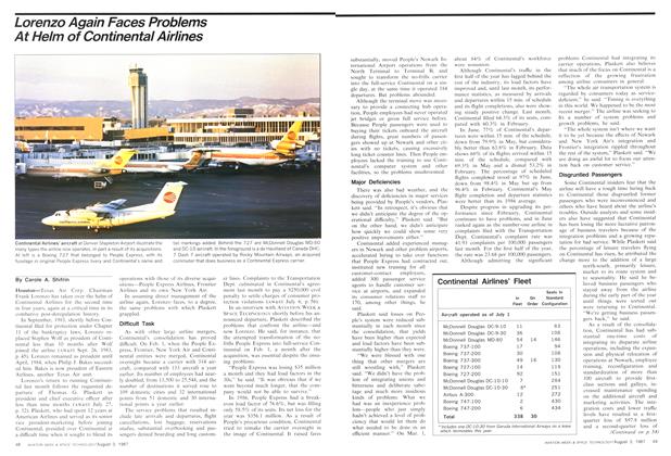 Houston—Texas Air Corp. Chairman Frank Lorenzo has taken over the helm of Continental Airlines for the second time in four years, again at a critical time in its combative post-deregulation history. In September, 1983, shortly before Continental filed for protection under Chapter 11 of the bankruptcy laws, Lorenzo replaced Stephen Wolf as president of Continental less than 10 months after Wolf joined the airline (AW&ST Sept. 26, 1983, p. 45).