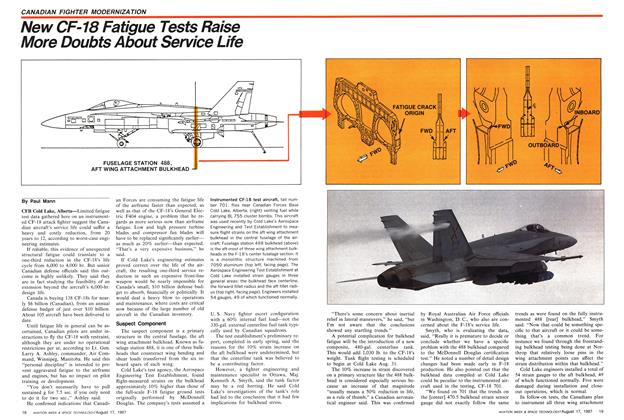 CFB Cold Lake, Alberta—Limited fatigue test data gathered here on an instrumented CF-18 attack fighter suggest the Canadian aircraft’s service life could suffer a heavy and costly reduction, from 20 years to 12, according to worst-case engineering estimates.