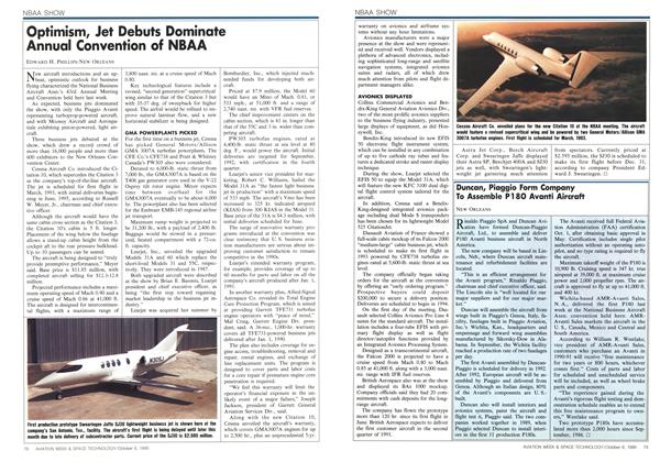 NEW ORLEANS New aircraft introductions and an upbeat, optimistic outlook for business flying characterized the National Business Aircraft Assn.’s 43rd Annual Meeting and Convention held here last week. As expected, business jets dominated the show, with only the Piaggio Avanti representing turboprop-powered aircraft, and with Mooney Aircraft and Aerospatiale exhibiting piston-powered, light aircraft.