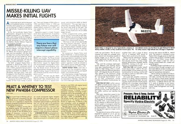 MISSILE-KILLING UAV MAKES INITIAL FLIGHTS