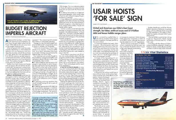 WASHINGTON Additional B-2 bombers, a third Sea-wolf submarine and amphibious assault ships, thought safely tucked into the Fiscal 1996 defense bill, are once more on the budget chopping block. Other programs that could be jeopardized, depending on what additional defense cuts are necessary and how deep they must be, include the purchase of F-l5Es, Block 50 F-l6s and additional F/A-l8C/Ds; precision guided weapons; conventional ammunition, and the already ravaged operations and maintenance funds.