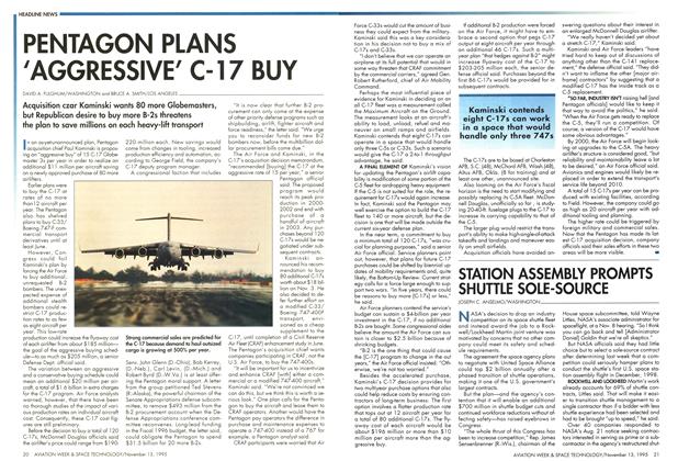 CAPE CANAVERAL AIR STATION Titan 4 team members here performed an unprecedented 24-hr. turnaround from a scrubbed launch to successfully orbit the Pentagon's newest, $1-billion secure communications satellite last week. Faced with persistent poor weather, U.S. Air Force officials abandoned their first attempt to launch a Titan 4 carrying the second Milstar high-priority communications satellite at 12:27 a.m. Nov. 5. The USAF and contractor launch teams then surmounted several hurdles to secure the Titan and its Centaur upper stage overnight, refuel it and launch it during a shortened window on Nov. 5. Liftoff of the vehicle, designated K-21, was from Pad 40 at 12:15 a.m. Nov. 6.