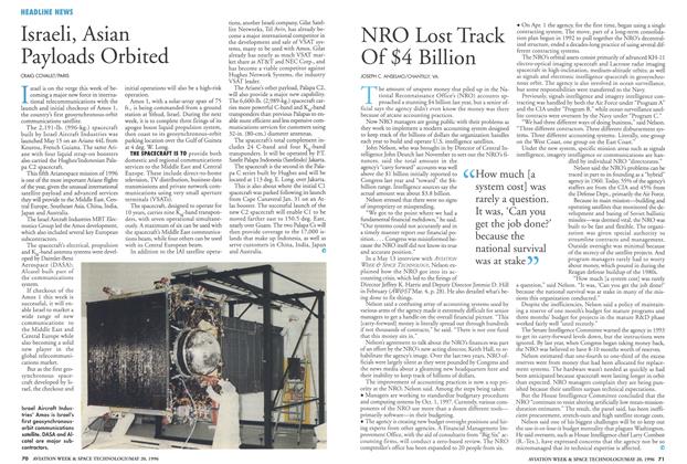 PARIS Israel is on the verge this week of becoming a major new force in international telecommunications with the launch and initial checkout of Amos 1, the country’s first geosynchronous-orbit communications satellite. The 2,191-lb. (996-kg.) spacecraft built by Israel Aircraft Industries was launched May 15 on an Ariane 44L from Kourou, French Guiana.