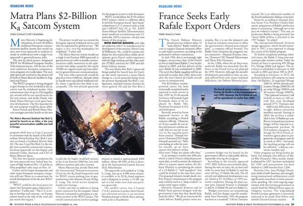 PARIS The French Defense Ministry should procure without delay 10 “early delivery” Rafale combat aircraft to support Dassault Aviation’s effort to seek export customers, according to the parliament’s defense commission. In mid-1996, due to increasingly tight budgets, service-entry date of the French air force’s land-based Rafale C was further delayed to 2005, and first delivery of the navy Rafale M was rescheduled to 2000.