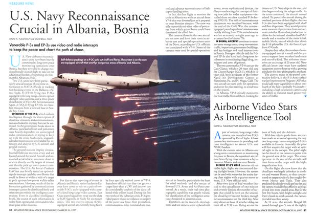 NAS SIGONELLA, ITALY A pair of unique, long-range video cameras, one on each of two P-3Cs operated by Patrol Sqdn. 8 have become key instruments in providing realtime intelligence to senior U.S. and NATO leaders. With the current crisis in Albania and a long-term commitment to monitoring the peace in Bosnia, the squadron’s aircraft have been flying three missions a day— two over Albania and one over Bosnia.