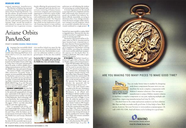 KOUROU, FRENCH GUIANA Arianespace has successfully lofted a PanAmSat communications spacecraft into a geostationary transfer orbit following liftoff here of an Ariane 44LP at 3:31 a.m. local time on Sept. 16. The 3,838-kg. (8,444-lb.) PAS 7 satellite, built by Space Systems/Loral, will be located over the Indian Ocean at 68.5 deg. E. Long.
