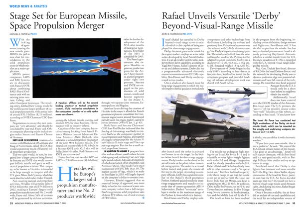 PARIS With the inking of agreements creating the new missile giant MBDA, the path is now clear for consolidation in the solid propulsion sector in which missiles are a major application. MBDA parent companies EADS and BAE Systems are in discussion with France’s SNPE about combining BAE's Royal Ordnance unit with an existing joint venture, Celerg, and other European businesses.