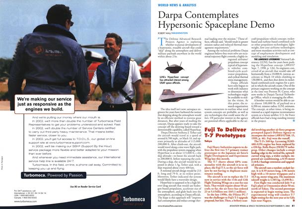 WASHINGTON The Defense Advanced Research Projects Agency is exploring whether to pursue development of a hypersonic, reusable aircraft that could “skip” along the atmosphere and deliver military payloads anywhere in the world within about 2 hr. The idea itself isn’t new; aerospace engineers for years have harbored the notion that skipping along the atmosphere would be an efficient method to traverse great distances. But after years of mulling the concept, Darpa appears ready to take the concept off the drawing board toward a demonstrable capability, called HyperSoar. Darpa Director Anthony J. Tether said the aircraft would travel at a speed of around 6,700 mph., or Mach 10, and operate primarily at altitudes of 115,000200,000 ft. After climb-out, the aircraft would travel along a sine-wave flight path, with the propulsion system engaging when HyperSoar is at about 115,000 ft.—the skip altitude—to boost the aircraft back to 200,000 ft. before repeating the cycle. During a skip, the aircraft would be exposed to about 1.5g, Tether said, with a skip required about every 400 km. A notional aircraft design would be 213 ft. long and 79 ft. at its widest point. Moreover, Tether indicated the system would likely have a waverider design. HyperSoar is supposed to be a high liftover-drag aircraft that would use hydrogen-based propulsion, accelerate out of the atmosphere, and glide back into the atmosphere, according to Darpa officials. The hope is this approach will “improve fuel consumption and reduce average thermal loading over the mission.” Those effects, officials said, “should result in greater mission radius and reduced thermal management requirements.” Among the technical problems Darpa engineers believe they must solve are occasional trajectory flight controls; a highly integrated airframe/ propulsion concept typical of hypersonic vehicles; combined-cycle accelerator propulsion, and cyclical thermal stress management. Darpa officials have only begun to work with industry to determine what technologies might be available to realize the vision. At this point, the research organization wants contractors to outline what total system concepts are probable, as well as any technologies that could assist the effort. Of particular interest to the agency are potential efforts applicable to the aircraft/propulsion vehicle concept; rocketbased and turbine-based combined cycle or other propulsion technologies; lightweight, low-cost airframe technologies; and more mundane activities such as concept of employment development and modeling and simulation. THE LAWRENCE LIVERMORE National Lab oratory (LLNL) has for years been pushing the HyperSoar concept (AW&ST Sept. 7, 1998, p. 126). Its engineers conceived of an aircraft that would take off horizontally from a 10,000-ft. runway, accelerate to Mach 10 while climbing to 130,000 ft., and then shut down its rocketbased combined-cycle engines for a period in which the aircraft coasts. One of the primary engineers working on the concept at the time was Preston H. Carter, who now works in Darpa’s Tactical Technology Office, which is managing the effort. A bomber version would be able to carry almost 100,000 lb. of payload on a 6,200-mi. mission radius, LLNL estimates. The concept, at other times, is being envisioned as a rapid response reconnaissance system or a future airlifter. U.S. Air Force officials have had a long-standing interest in the project. ©