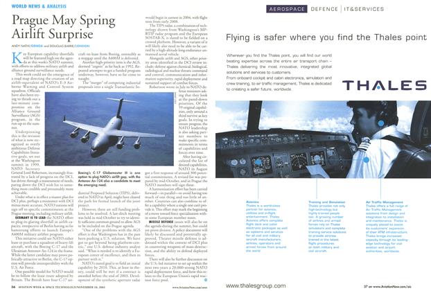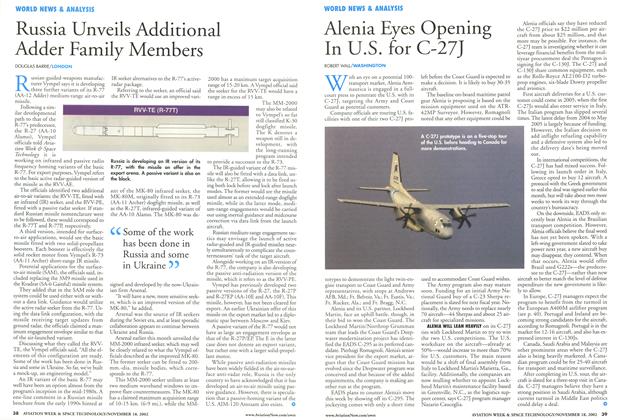 WASHINGTON With an eye on a potential 100transport market, Alenia Aeronautica is engaged in a fullcourt press to penetrate the U.S. with its C-27J, targeting the Army and Coast Guard as potential customers. Company officials are touring U.S. facilities with one of their two C-27J prototypes to demonstrate the light twin-engine transport to Coast Guard and Army representatives, with stops at Andrews AFB, Md.; Ft. Belvoir, Va.; Ft. Eustis, Va.; Ft. Rucker, Ala.; and Ft. Bragg, N.C. Alenia and its U.S. partner, Lockheed Martin, face an uphill battle, though, in their bid to woo the Coast Guard.