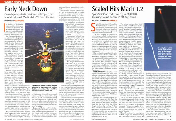 SpaceShipOne rockets at 3g to 68,000 ft., breaking sound barrier in 60-deg. climb