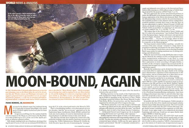 WASHINGTON Mars may be the ultimate target, but continued strong U.S. leadership in human spaceflight is the stated goal of NASA’s tightly focused new plan for lunar exploration. A rigorous scrubbing over the summer held the cost of a return to the Moon as a first step to the Red Planet to what NASA says is 55% of the cost of the Apollo program in inflation-adjusted dollars.