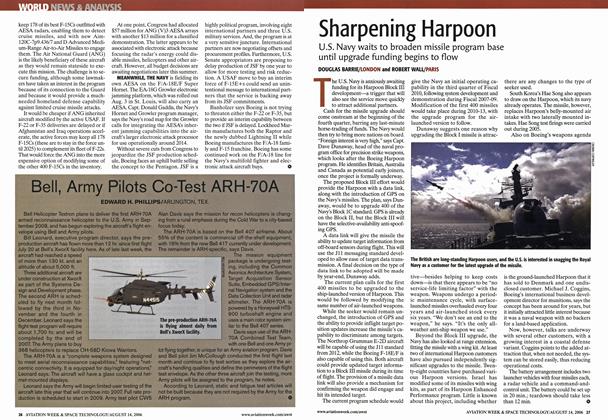 ARLINGTON, TEX. Bell Helicopter Textron plans to deliver the first ARH-70A armed reconnaissance helicopter to the U.S. Army in September 2008, and has begun exploring the aircraft’s flight envelope using Bell and Army pilots. Bill Leonard, executive program director, says the pre-production aircraft has flown more than 12 hr. since first flight July 20 at Bell's XworX facility here.