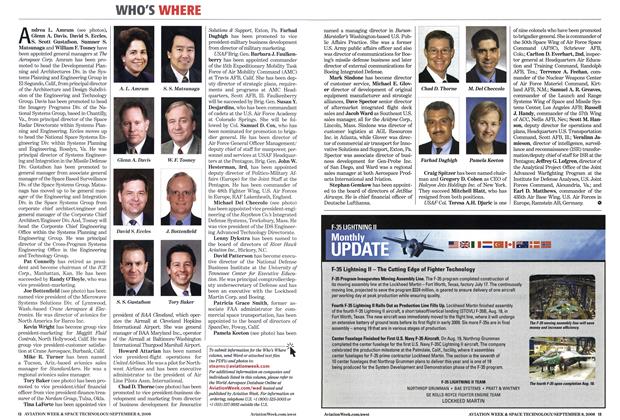 Andrea L. Amram (see photos), Glenn A. Davis, David S. Eccles, S. Scott Gustafson, Sumner S. Matsunaga and William F. Tosney have been appointed general managers at The Aerospace Corp. Amram has been promoted to head the Developmental Planning and Architectures Div. in the Systems Planning and Engineering Group in El Segundo, Calif., from principal director of the Architecture and Design Subdivision of the Engineering and Technology Group. Davis has been promoted to head the Imagery Programs Div. of the National Systems Group, based in Chantilly, Va., from principal director of the Space Radar Directorate within Systems Planning and Engineering.