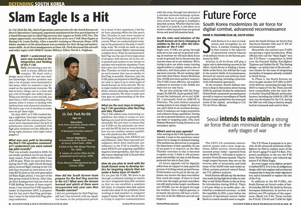 AW&ST: I understand you were very involved in the integration and fielding of the F-15K. Park: Introducing a new aircraft is always difficult and complex. We dealt with a design about which we had very shallow knowledge. Another problem was that a lot of people were interested in this issue, while we wanted to stay focused on the operational concerns.