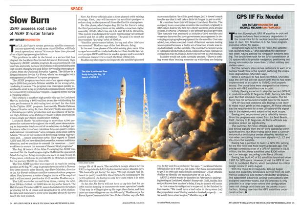 WASHINGTON SAN FRANCISCO The first Boeing-built GPS IIF satellite in orbit will require software fixes to reduce degradation in the cross-links for its nuclear-detection payload, says Lt. Gen. Tom Sheridan, U.S. Air Force program executive officer for space.