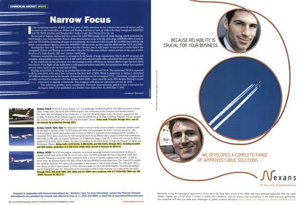 In the remaining months of 2012 and first part of 2013, attention in the commercial aircraft sector will be focused on narrowbodies, as Airbus and Boeing continue to rack up orders for their reengined A320NEO and 737 MAX families and Bombardier works to get the CSeries into the air.