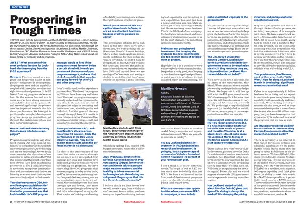AW&ST: What are some of the most profound lessons for Lockheed Martin emerging from the F-35 experience? Hewson: This is a brand-new program that brings with it a lot of complexity—uniqueness in development, the program itself and the capability, coupled with three joint services and eight international partners.