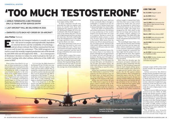 > AIRBUS TERMINATES A380 PROGRAM ONLY 12 YEARS AFTER SERVICE ENTRY > LAST AIRCRAFT WILL BE DELIVERED IN 2021 > EMIRATES CUTS BACK KEY ORDER BY 39 AIRCRAFT