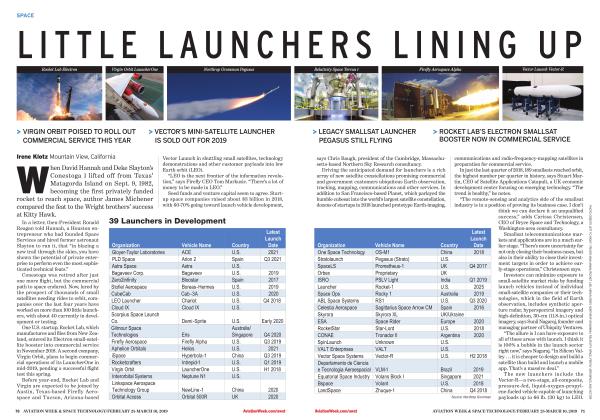 > VIRGIN ORBIT POISED TO ROLL OUT COMMERCIAL SERVICE THIS YEAR > VECTOR’S MINI-SATELLITE LAUNCHER IS SOLD OUT FOR 2019 > LEGACY SMALLSAT LAUNCHER PEGASUS STILL FLYING > ROCKET LAB’S ELECTRON SMALLSAT BOOSTER NOW IN COMMERCIAL SERVICE