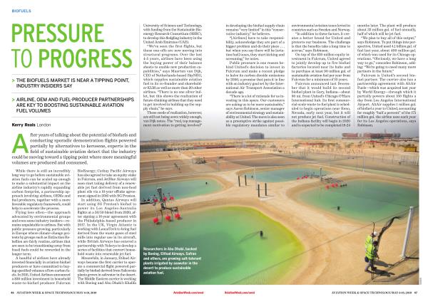 > THE BIOFUELS MARKET IS NEAR A TIPPING POINT, INDUSTRY INSIDERS SAY > AIRLINE, OEM AND FUEL-PRODUCER PARTNERSHIPS ARE KEY TO BOOSTING SUSTAINABLE AVIATION FUEL VOLUMES
