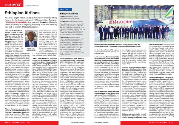 As Africa's largest carrier, Ethiopian Airlines has become a driving force in developing the continent’s MRO capabilities. Ethiopian CEO Mesfin Tasew Bekele discusses with James Pozzi how the airline is building MRO capacity, nurturing talent and adopting new tech to support Africa’s aftermarket.